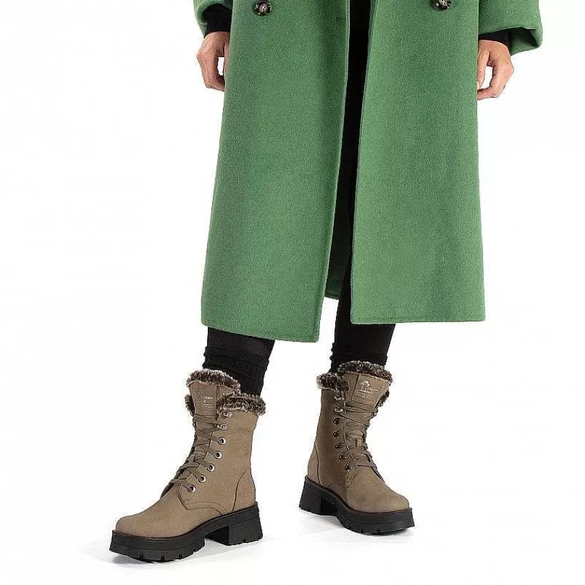 Laarsjes Voor Dames Met HakVetersluiting.Nubuckleer Grijs Waterproof.Leren Voering.Anatomische En Uitneembare Binnenzool…